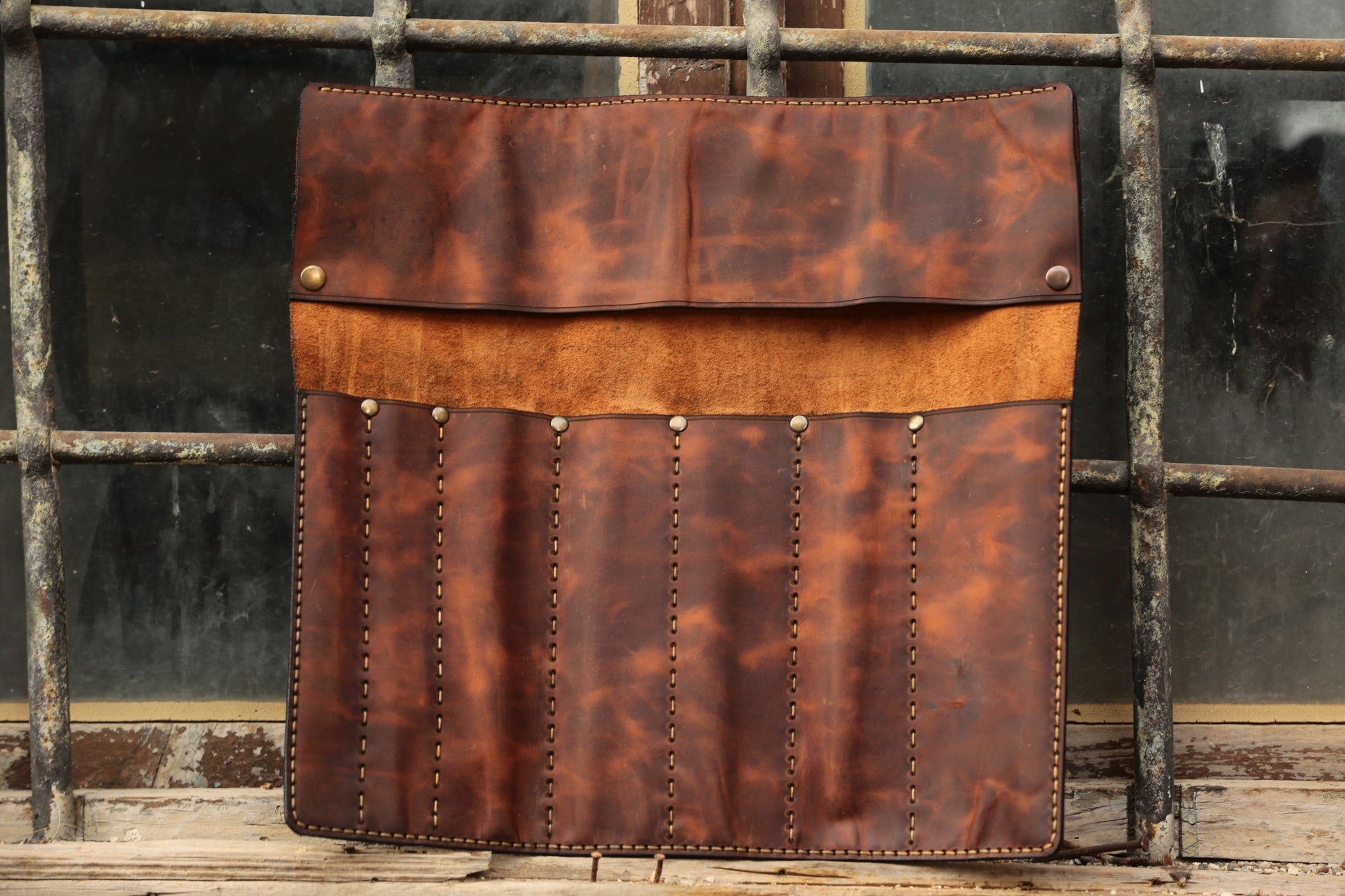 Genuine Cow Leather knife Pouch Knife Roll Chef bag Professional Case